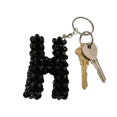 Generic - ميدالية مفاتيح يدوية الصنع حرف H، خرز أسود كريستالي لامع، إكسسوار فاخر للسيارة والحقائب