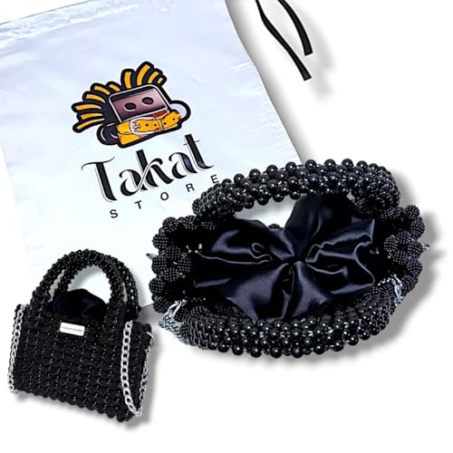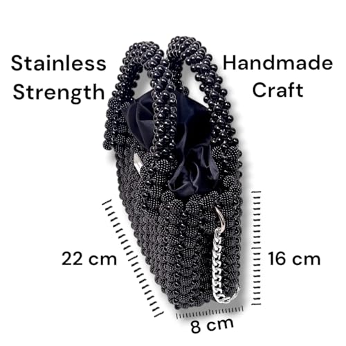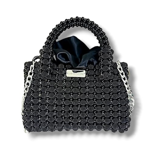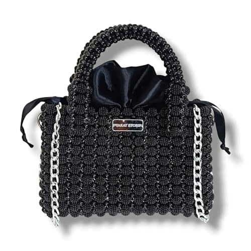 Generic - Handmade Luxury Women's Crossbody Bag - CCB Lolly Beads + FTavit Round - Chain and Stainless Openers - Turkish Satin Lining - (Black) - Dimension: 22x16x8cm