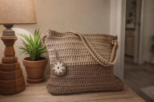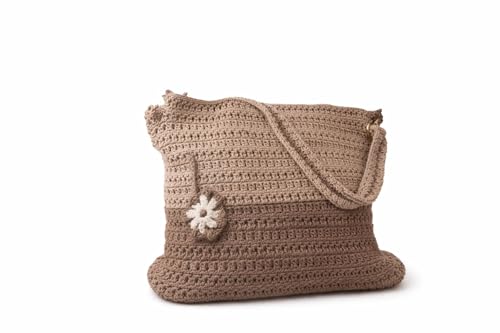 Wooden Touchy - Handmade Macramé Crochet Shoulder Bag for Women – Boho Style Fashion Handbag with Plush Lining and Zipper, Brown & Beige.