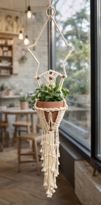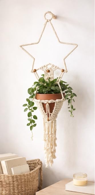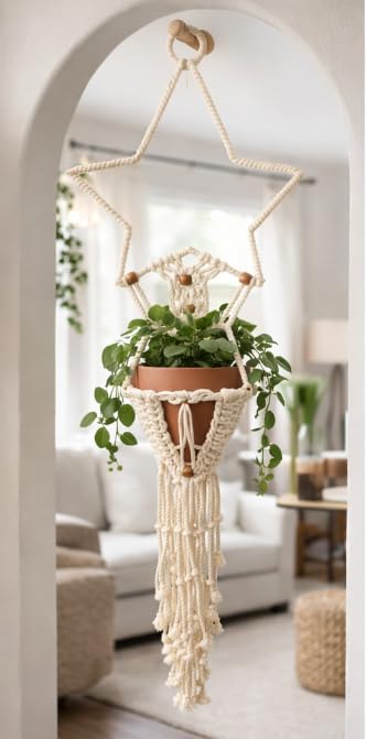 - Macrame DIY Design: 100% handmade high quality cotton rope hanging plant holder with elegant star design and exquisite knots add a sophisticated touch of art to your home decor