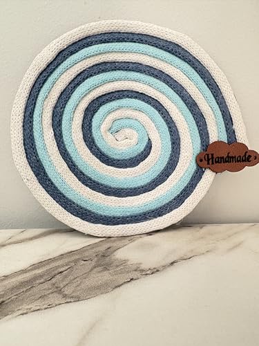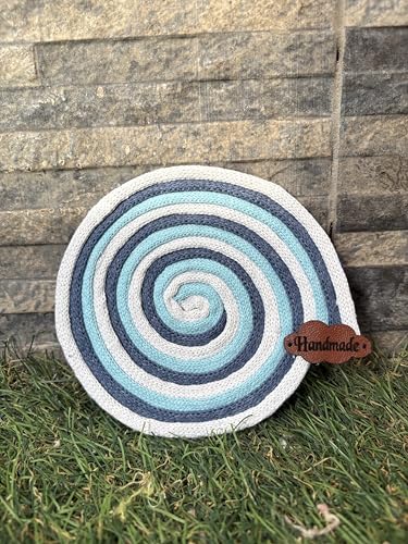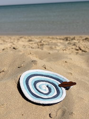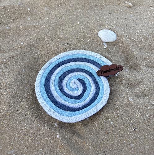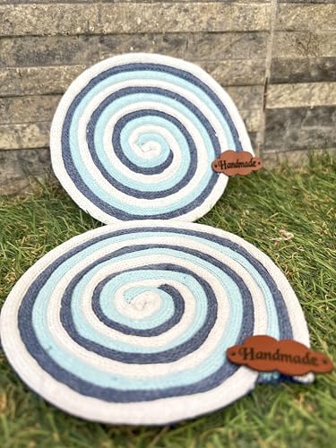 - Set of 2 handmade round coasters in spiral blue & white design. Made from 100% cotton cord, eco-friendly and durable. Heat resistant and protects surfaces from hot cups or glasses. Multipurpose: can be used as cup mats, small decorative accents, or wall hangings. Perfect for home, office, or as a unique handmade gift.