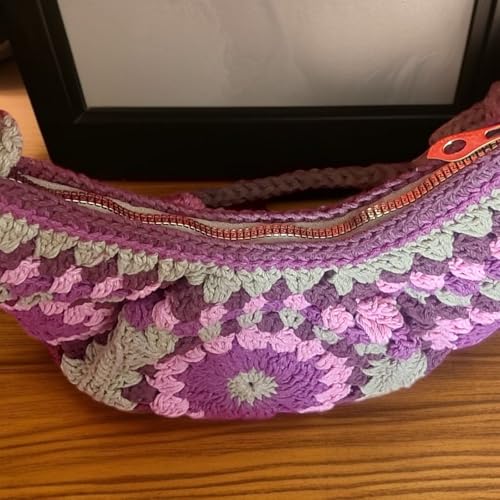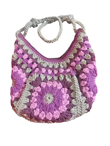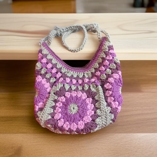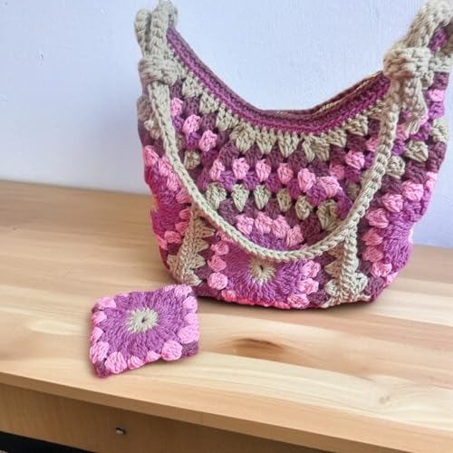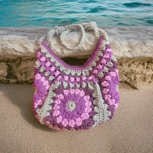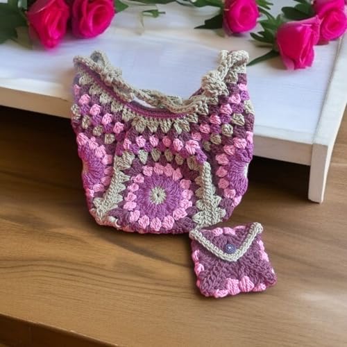 Generic - Handmade Square Crochet Handbag, Pink and Purple Turkish Cotton, 32 x 23.5 cm, with Matching Wallet
