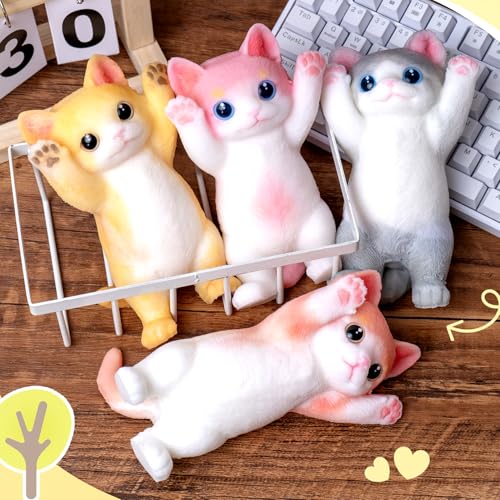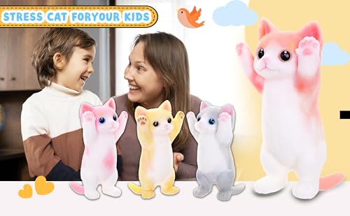 GLYH - Handmade Squshy Toys Cute Cat Squeeze Toy No Odor Silicone Simulation Cats Doll Toys Cute Kitty Squishy Stress Relidf Toy (Orange)