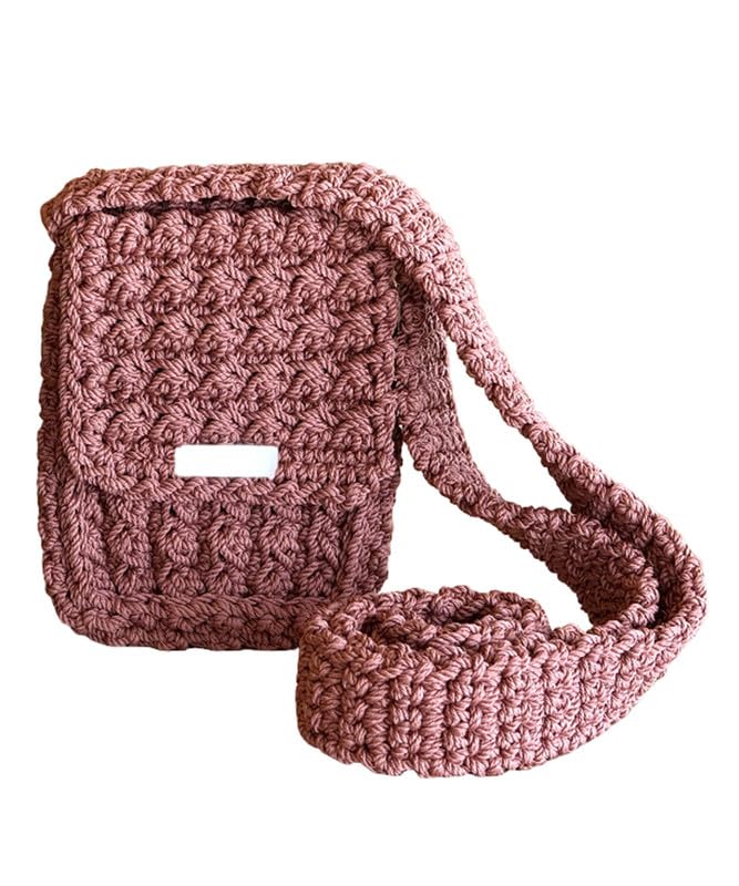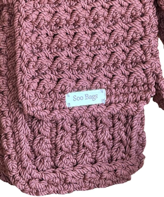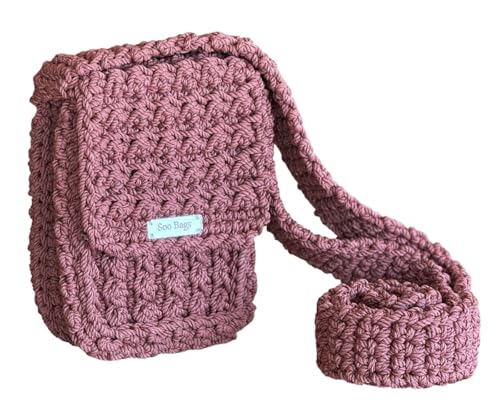 Soo bags - شنطة موبايل كروشيه يدوية الصنع مصنوعة من خيوط مكرمية متينة للغاية مع مقبض من نفس نسيج الشنطة كقطعة واحدة - لون فوشيا
