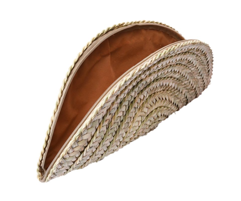 Nubia Egypt - حقيبة يد نسائية من الخوص شبه دائري مصنوعة يدويًا مع سحاب