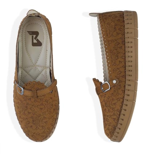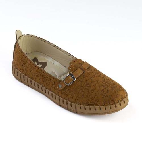 Generic - حذاء باليرينا حريمي هاند ميد من الشمواه السويدي الفاخر - تصميم مريح بنعل بروتان وزخارف يدوية فريدة