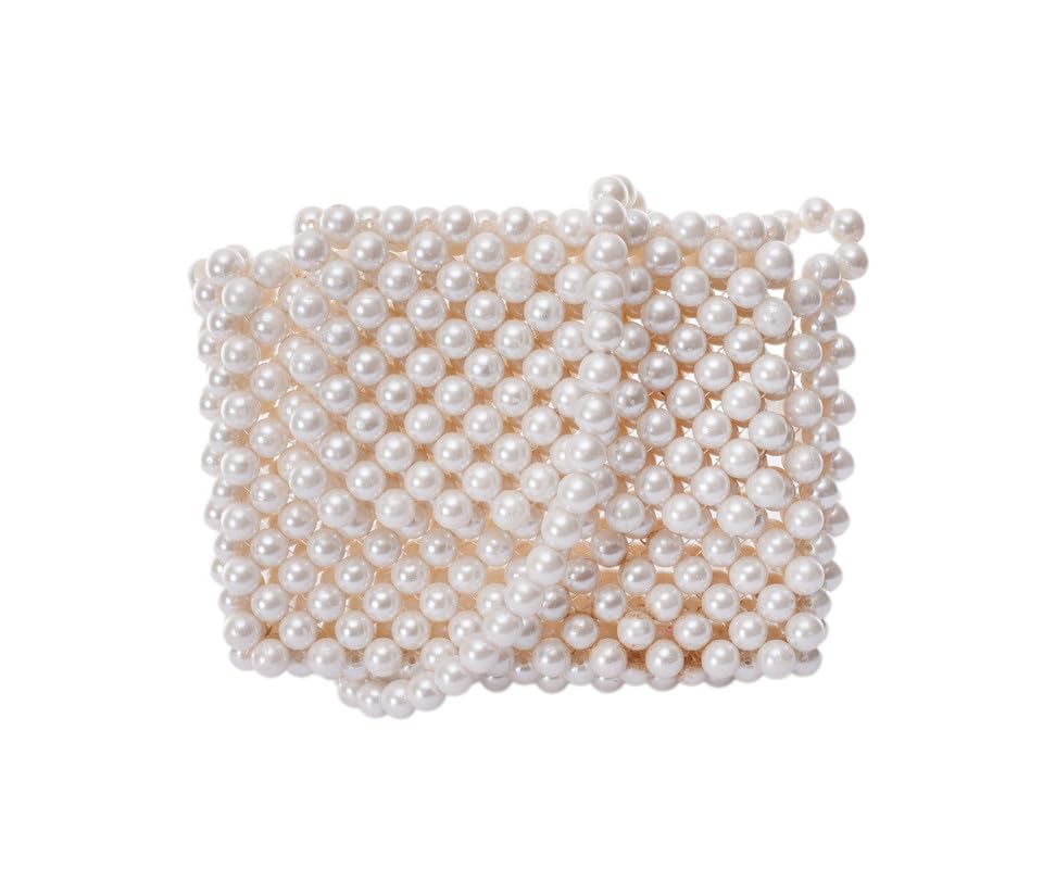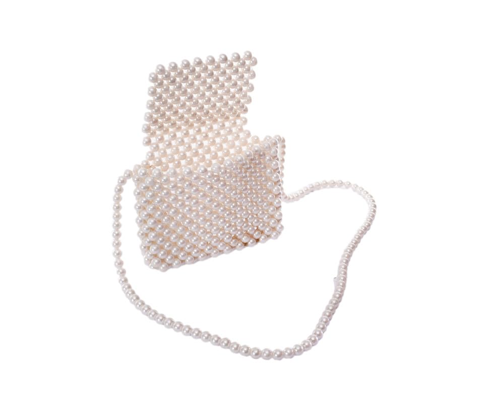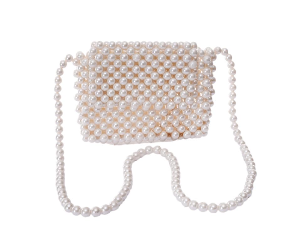 Nubia Egypt - شنطة سهرة نسائية مصنوعة يدويا من اللؤلؤ الابيض بمقبض من اللؤلؤ - ابيض