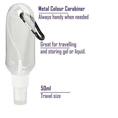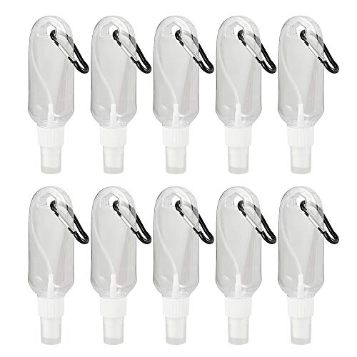 Hands DIY - زجاجات فارغة قابلة لإعادة الملء ومناسبة للسفر بسعة 50 مل، زجاجات بلاستيكية مزودة بغطاء قابل للطي ومشبك حزام وحلقة تعليق, 10 قطع