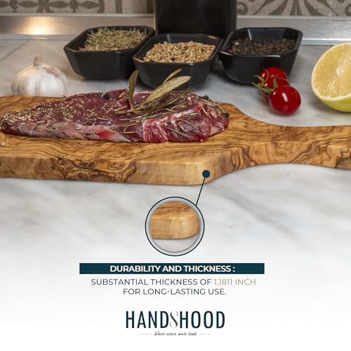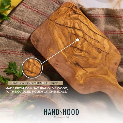 HandsHood - لوح تقطيع خشبي مصنوع يدويا من خشب الزيتون بنسبة 100% للمطبخ وتناول الطعام، مقاس S (11.8 انش × 5.9 انش) من هاندهود