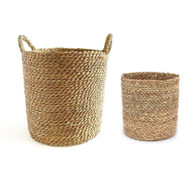 عام - Handwoven Seagrass Storage Baskets with Handles, Yellow, Set of 2 (30cm and 25cm)