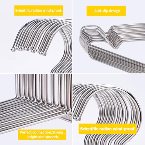 - تجويف مانع للانزلاق - الشماعات السلكية قوية ومتينة، لا تصدأ ولن تنكسر بسهولة بسبب الملابس الثقيلة. يمنع تصميم التجويف على شكل حرف V المميز على كلا الجانبين الملابس من السقوط وهو مفيد لتعليق الفساتين واللانجيري والملابس ذات الأشرطة.