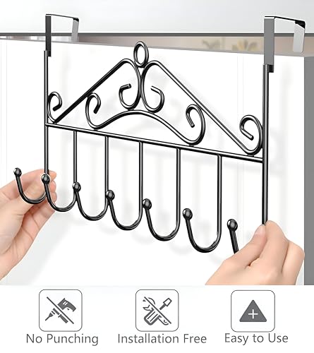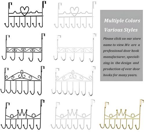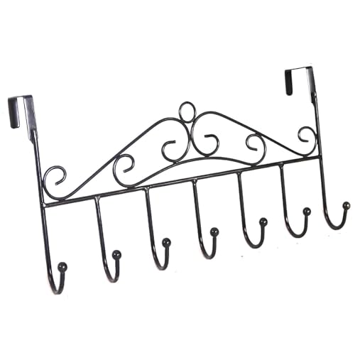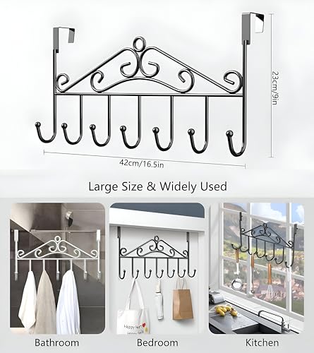 - This versatile over-the-door rack features six hooks designed for hanging coats, towels, bags, and robes. Made from durable iron with a rust-resistant finish, it includes seven hooks to accommodate various items such as towels, robes, scarves, coats, bags, and more. Its lightweight design and precise welding ensure strength and easy installation, making it a practical addition to any space.