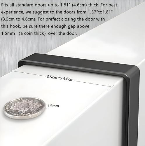 - Measuring a generous 16 inches by 9 inches (42 cm by 23 cm), this door hook is designed to fit all standard doors up to 1.81 inches (4.6 cm) thick. It is perfect for doors ranging from 1.38 inches to 1.8 inches (3.5 cm to 4.6 cm) thick, ensuring a secure and practical fit for your home or office.