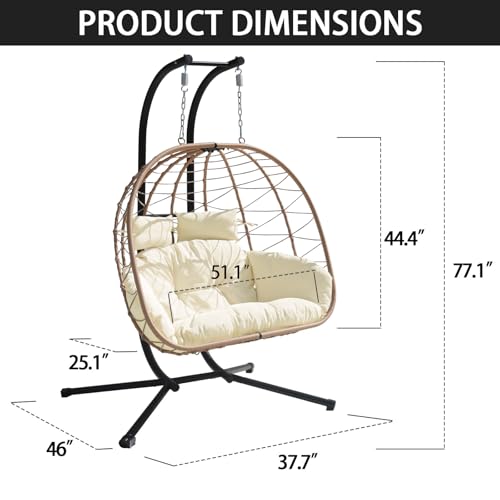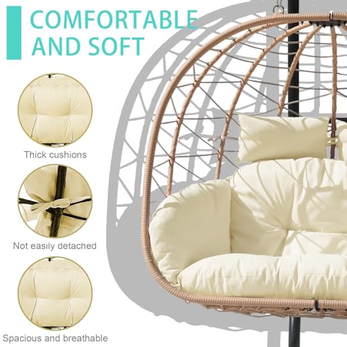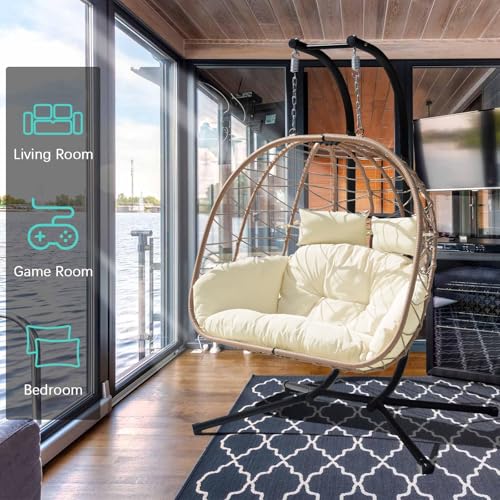 - Luxury Patio Outdoors: The double Egg chair is designed to be used inside or outside; Stand and chair combo makes it easy to add a stylish seat to an apartment without having to permanently install it into the ceiling; Makes a wonderful addition to the patio, deck, garden, yard, backyard, porch, bedroom, living room and other places around your home.