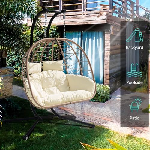 VIXLON - Hanging Egg Chair with Stand Indoor Swinging Chair Outdoor Hammock Egg Chair for Patio, Bedroom, Garden and Balcony (Milky White, Large)