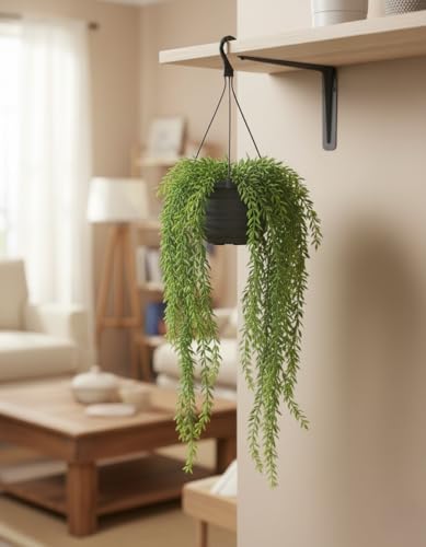 Generic - نبات مُعلّق متدلّي للديكور الداخلي مع أصيص أسود وحامل تعليق – نبات أخضر جداري/سقفي لإضفاء لمسة طبيعية على المنزل والمكتب (كثيف)