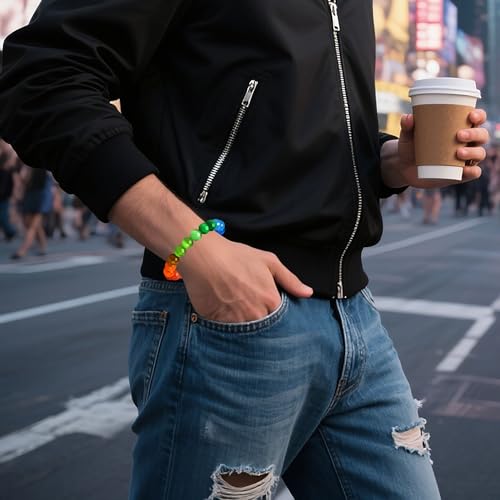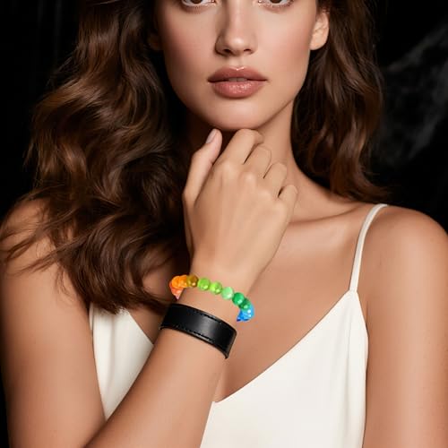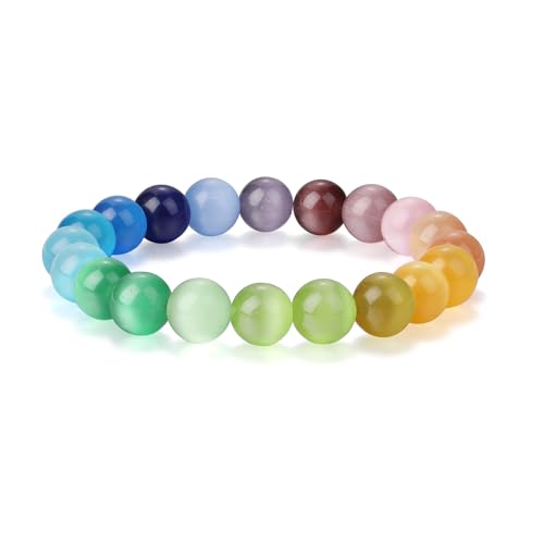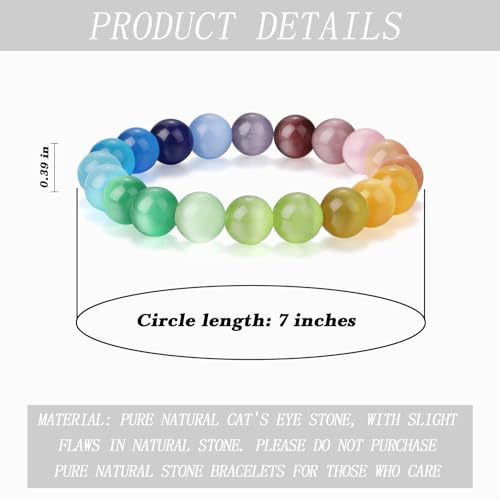 HANGINTHERE - HANGINTHERE 10 mm Colorful Cat's Eye Stone Beaded Bracelets for Men Women,7 In, lucky Stone Gifts for Men Women, Mens Gifts for Birthday