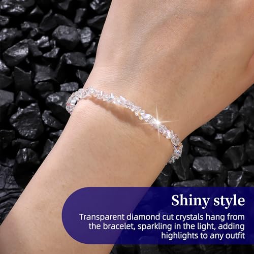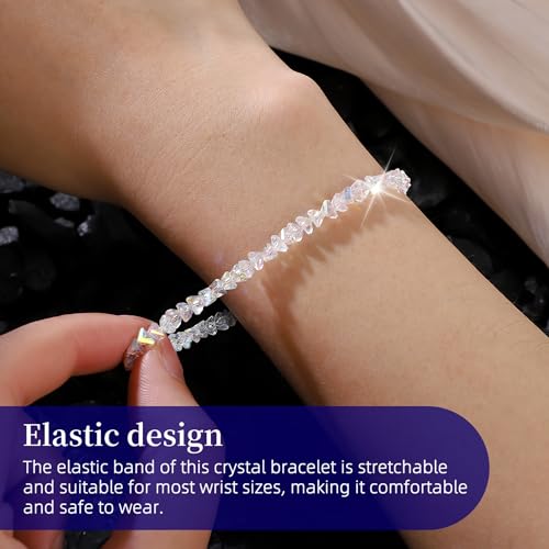 HANGINTHERE - سوار كريستال للنساء بتصميم مرن من هانجينثير، 7 انش، 0.1 اونصة، كريستالات معين شفافة، تتضمن شنطة هدايا