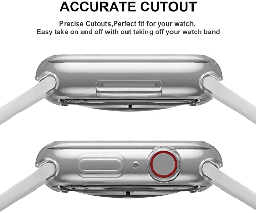 - 3. جراب واقٍ أمامي كامل، يمكنك توفير طبقة زجاجية واقية لشاشة الساعة الذكية!! ! قم بتغطية وجه ساعة أبل وحوافها بدقة لمنع الكسر والخدوش، والحفاظ على ساعة أبل جديدة بعد فترة طويلة.