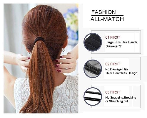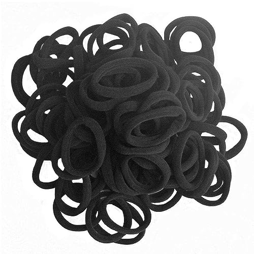 HANMEI - HANMEI Seamless High Elastic Cotton Stretch Hair Ties Bands (Black, 8mm)- 100 Pieces