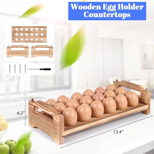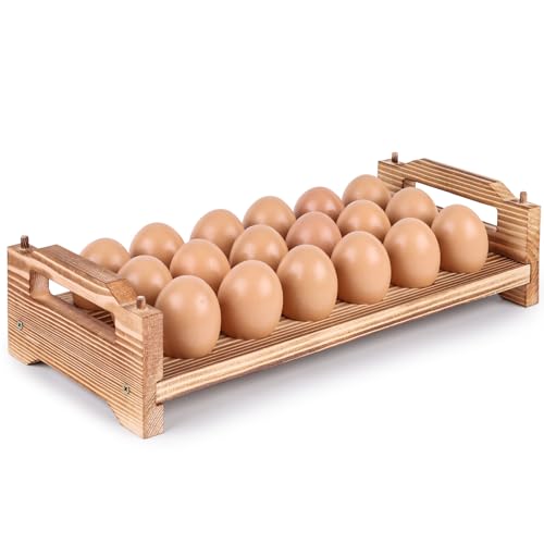 HANSGO - HANSGO Wooden Egg Holder, Countertop Fresh Egg Holders Egg Storage Tray Egg Container Rack Organizer Holding 18 Eggs