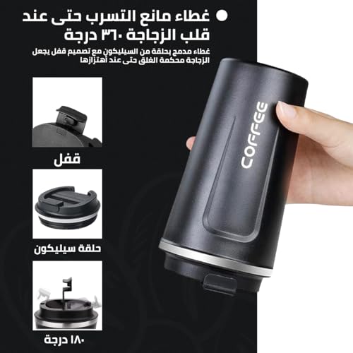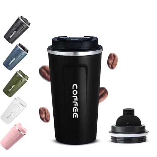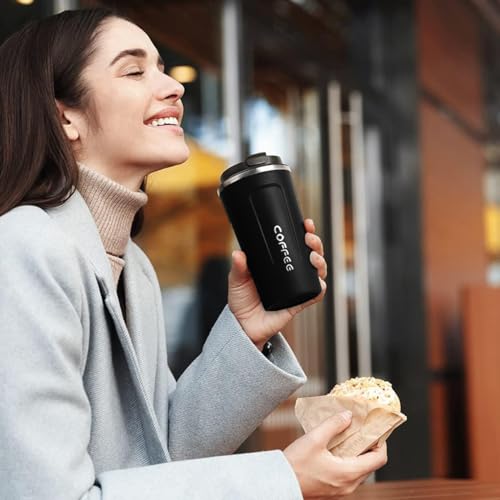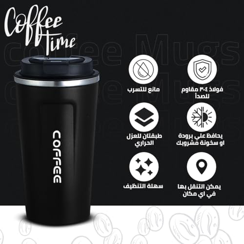 Hanso 1 - hanso Coffee Cup Stainless Steel Vacuum Mug Keeps Drinks Hot & Cold thermal coffee mug double wall BPA-Free Slip-Proof and Leak-Proof, MK-128 – (510 ML) (Black)
