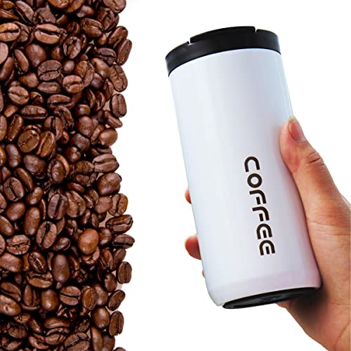 Hanso - hanso Coffee Cup Stainless Steel Vacuum Mug Keeps Drinks Hot & Cold thermal coffee mug double wall BPA-Free Slip-Proof and Leak-Proof (White 400ML)