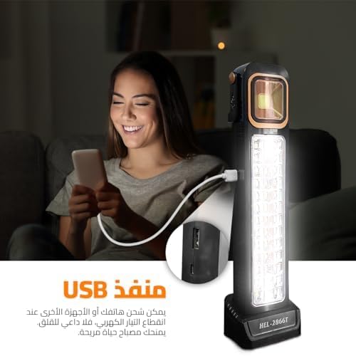 H-Home - hanso Emergency Light Rechargeable 30W LED Solar Light Intelligent Technology, 5 Gears, 320° Rotating Handle, Long Life - Solar Charging with 2400mAh Battery Capacity, HEL-2866T