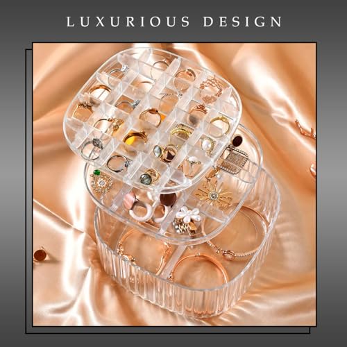 Hanso - صندوق تخزين المجوهرات من هانسو منظم مجوهرات بثلاث طبقات وقابل للتكديس للقلائد والحلقان والخواتم 15 × 7.5 سم شفاف أكريليك