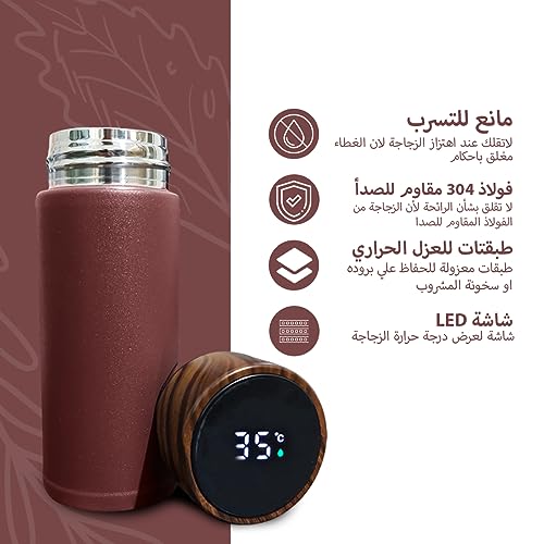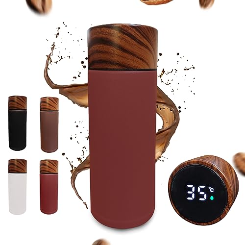 Hanso - hanso Mini Vacuum Insulated Flask Digital Thermos Mug Coffee Vacuum Container Flasks Thermos Portable Travel Water Bottle Cup 304 Stainless Steel for Tea & Coffee 320ML (Burgundy)