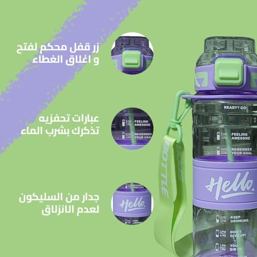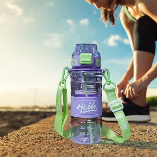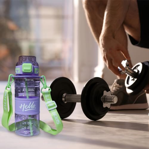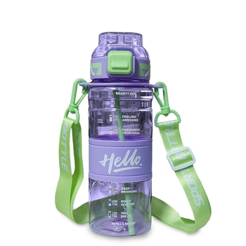 hanso - hanso Sports Water Bottle Leak-Proof Sport with Straw, Portable Fashion Outdoor Durable Gym Fitness Drinking Bottle with Strap, BPA Free, (720ML) (Purple)