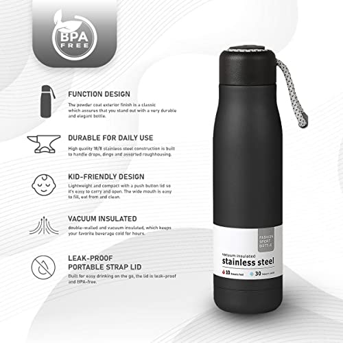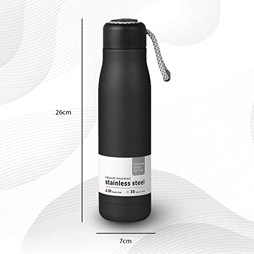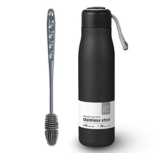 Hanso 1 - زجاجة مياه معزولة بتفريغ الهواء من هانسو رياضية مزدوجة الجدار مانعة للتسرب وخالية مادة BPA لانتعاش يدوم طويلًا 500 مل أسود مع فرشاة، ستانلس ستيل