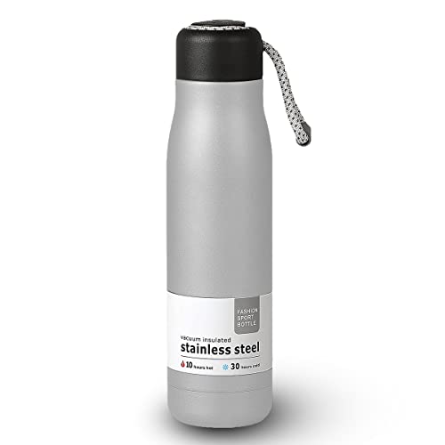 Hanso 1 - زجاجة مياه معزولة بتفريغ الهواء زجاجة مياه رياضية مزدوجة الجدار مانعة للتسرب وخالية من مادة بيسفينول أ، معزولة لانتعاش يدوم طويلا من هانسو، 500 مل (فضي)
