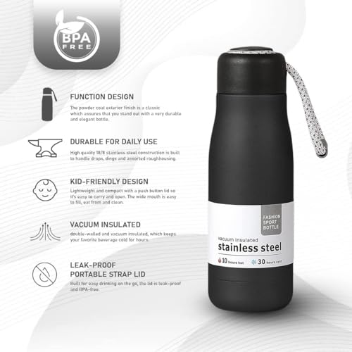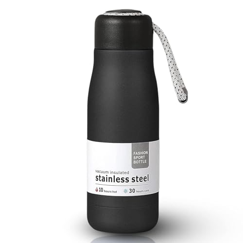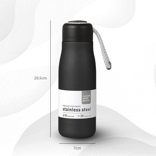 Generic - hanso Water Bottle, Vacuum Insulated Water Bottle, Double Wall Leak Proof Sports Water Bottle, BPA Free Water Bottle, Wide Mouth Sports Bottle with Handle, Silver, (350ml) (Black)