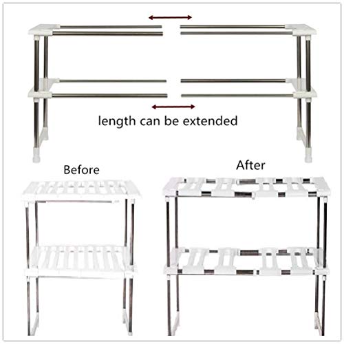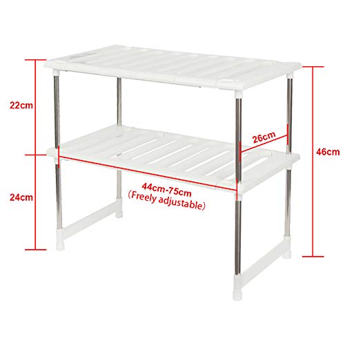 - ✱[Adjustable Kitchen Storage]- Adjustable kitchen under sink shelf with ingenious design, the length is extendable from 44-75cm according to the actual situation, easy to create more space under your sink.