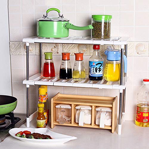 - ✱[Durable Cupboard Tidy Organiser]- Kitchen storage rack made of stainless steel and PP plastic, which is BPA free, heat resistant and no rust, strong enough to hold containers, spices, cleaners, dishes, bottles, pots and pans, etc.