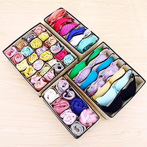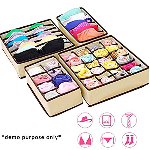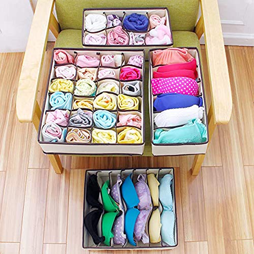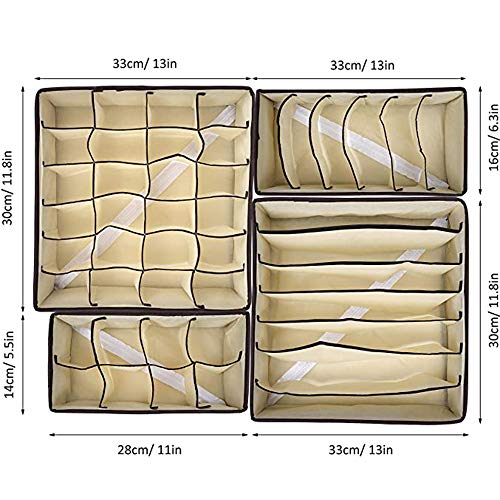 HANWEI - منظم ملابس داخلية للدواليب والأدراج وفواصل الأدراج مجموعة من فواصل صندوق تخزين قماش قابل للطي رمادي 4 قطع بيج