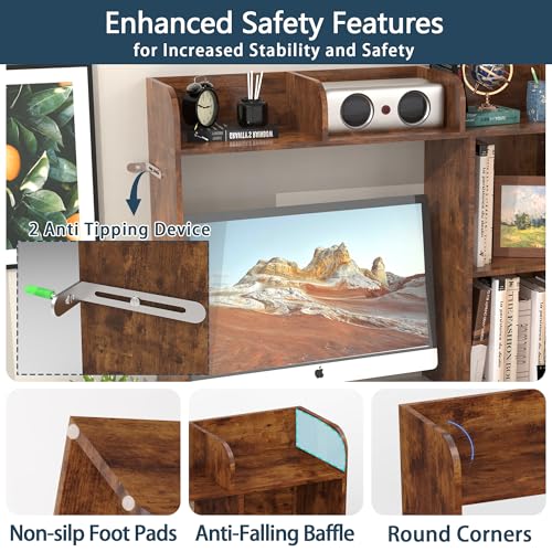 - ✅Enhanced Safety Features:The desktop hutch is equipped with 2 anti-toppling kits and 6 non-slip pads for increased stability and safety.the rounded corners get you free from bumps or scratches.The anti-falling baffle further ensures the security of your items.