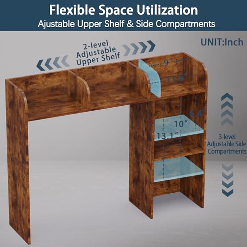 - ✅Flexible Space Utilization:The desk bookcase provides you with 3 upper adjustable shelves and 2 large adjustable side compartments, which can customize the shelf spacing to suit your needs, allowing for versatile organization.