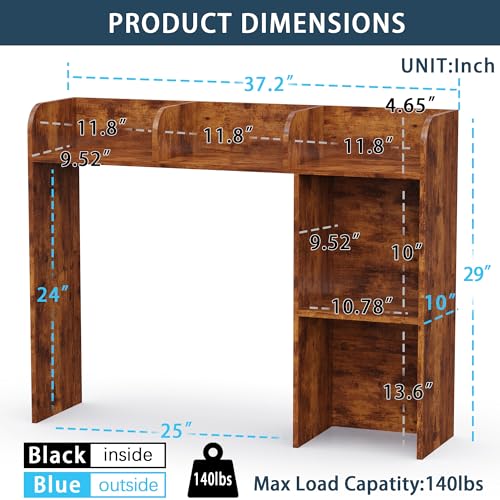 - ✅Premium Quality Materials:The desk shelf organizer is crafted from high-quality 12mm engineered wood, ensuring a sturdy structure with excellent weight-bearing capacity up to 145lbs.Overall dimensions are 37.2W x 9.84D x 24.6H.