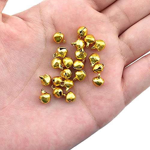 HAO PRO - اجراس هاو برو بقطر 6 ملم بصوت مهدئ واضح لتحديد موقع القطط والكلاب بفتحة خيوط اكبر تعلق بسهولة، جرس معدني يدوي بلون ذهبي للحديقة لاعياد الكريسماس واكاليل الزهور، طوق الحيوانات الاليفة، 130 قطعة
