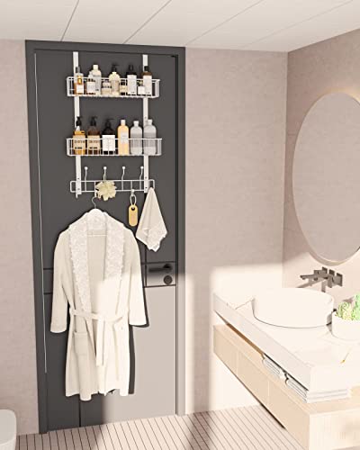 HapiRm - HapiRm Over The Door Organizer with 2 Baskets and 9 Hooks, Rustproof & Waterproof Stainless Steel Door Hanger, No Drilling Over Door Hook for Bathroom, Kitchen, Bedroom-White (for 1.6in Doors)