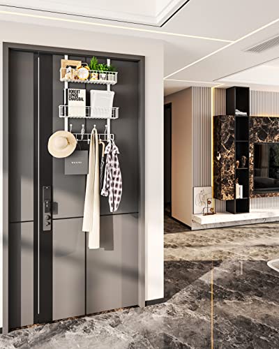 - ✅【𝗗𝗼𝗼𝗿 𝗖𝗼𝗮𝘁 𝗛𝗮𝗻𝗴𝗲𝗿 𝘄𝗶𝘁𝗵 𝗧𝗵𝗿𝗲𝗲-𝗟𝗮𝘆𝗲𝗿 𝗗𝗲𝘀𝗶𝗴𝗻】 Are you tired of all the items accumulated around your home? HapiRm door coat hanger provides extra storage space to help you easily store. In the top basket of the over the door organizer, you can store purse, snacks, decorations,etc; In the bottom basket, you can store skin care products, spice jars, notebook etc; 9 Coat Hooks can as jacket rack for you hanging coats, clothes, bags, robe, towels, umbrellas etc.