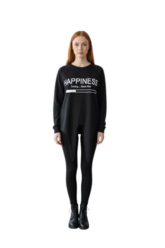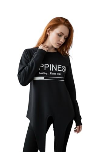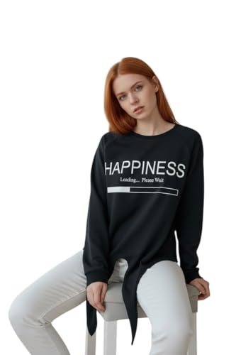 Generic - Happiness Ludding Black Sweatshirt, Soft Cotton, Fashion Design With Graphic Print, Long Sleeve Size L