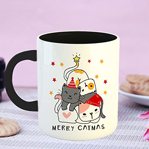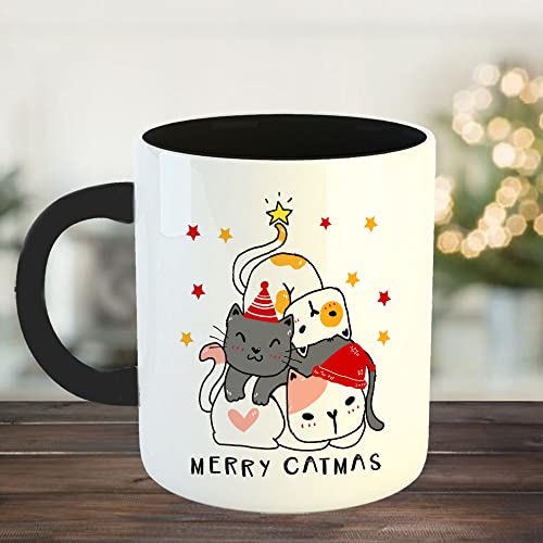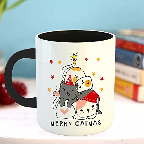 Happu - مج قهوة من السيراميك بطباعة قطط Merry Xmas، هدية كريسماس مثالية للأصدقاء والشقيقة والحبيبة والصديقات من هابو، 7770-BK