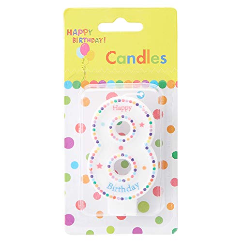 Other - Happy Birthday Rainbow Dotted Edges Eight Numeric Candle, 1 Pieces, White