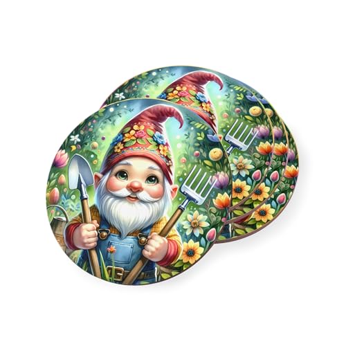 Generic - مجموعة قواعد اكواب مطاطية مزخرفة مع ادوات من هابي جاردنر - قاعدة اكواب دائرية لديكور المنزل او المكتب، مجموعة قواعد اكواب مطاطية مقاومة للحرارة ومتينة - مجموعة من 4 قطع