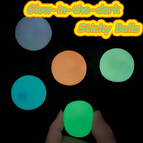 BLLTYY - Happy Gugu Glow in The Dark Sticky Fidget Toys, Ceiling Balls Sensory Toys, Stress Balls for Kids Adults (6)