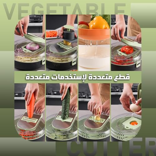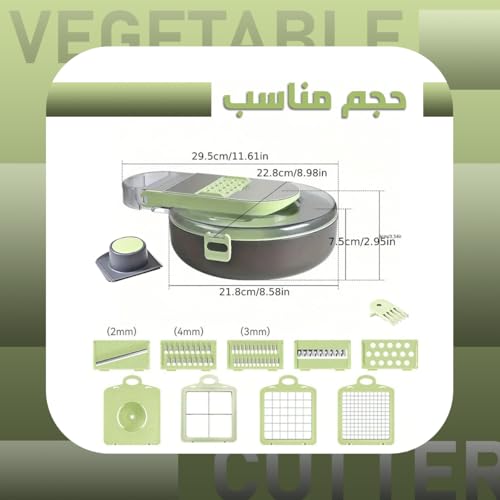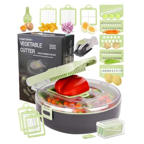 - تصميم متعدد الوظائف 9 في 1: توفر قطاعة الخضروات هذه تسع وظائف مختلفة، بما في ذلك التقطيع والتقطيع والبشر والتقليب، مما يجعلها أداة شاملة لجميع احتياجات إعداد المطبخ.