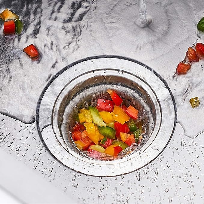 - 【Disposable Mesh Sink Strainer Bags】The sink strainer bag is a great concept as a new tool for kitchen cleanup. It's disposable design to catch those little pieces you couldn’t get to keep your hands clean, and make clean up the food residues, fabric or other garbage a snap!